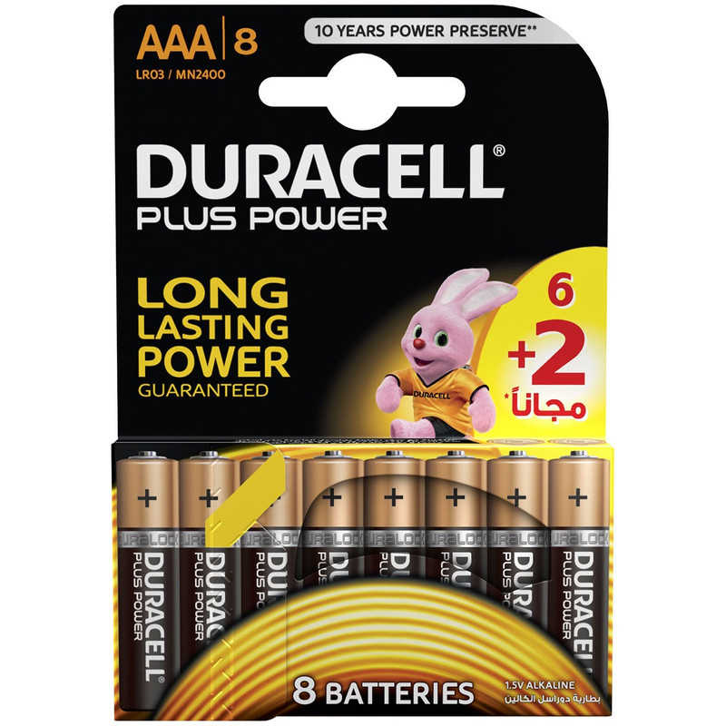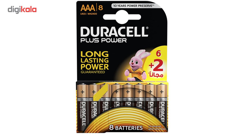 باتری نیم قلمی دوراسل مدل Plus Power بسته 6 + 2 عددی