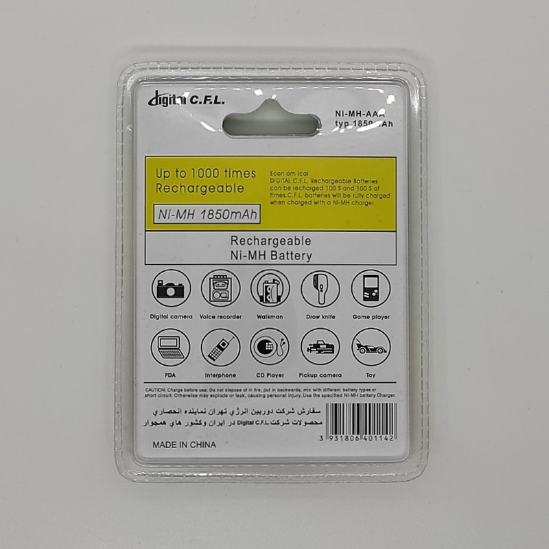 باتری نیم قلمی شارژی سی.اف.ال مدل 1850 بسته دو عددی