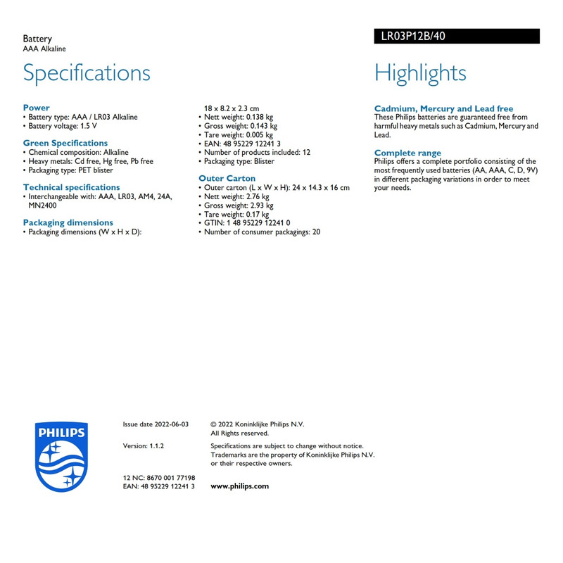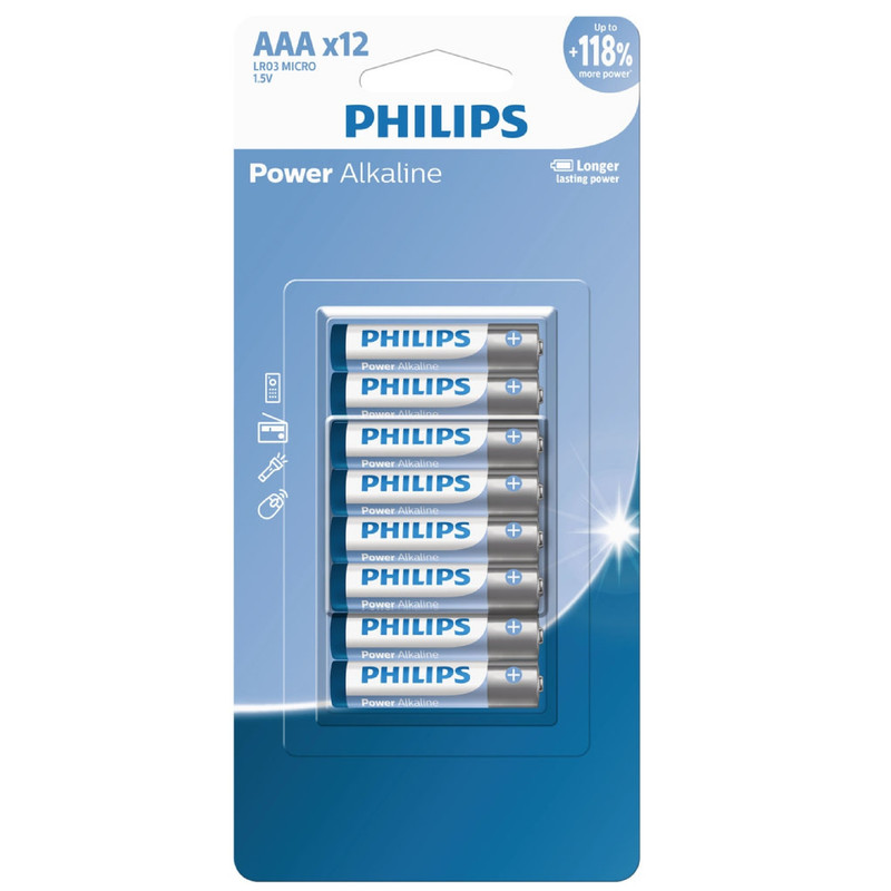 باتری نیم قلمی فیلیپس مدل Power Alkaline بسته 12 عددی