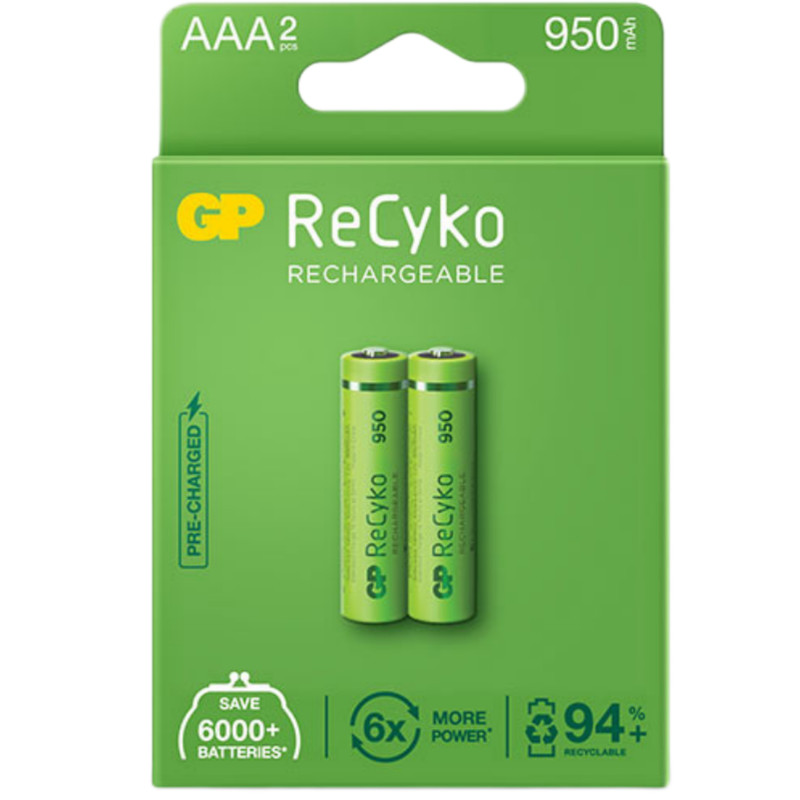 باتری نیم قلمی قابل شارژ جی پی مدل Rechargeable Recyko 950 بسته دو عددی