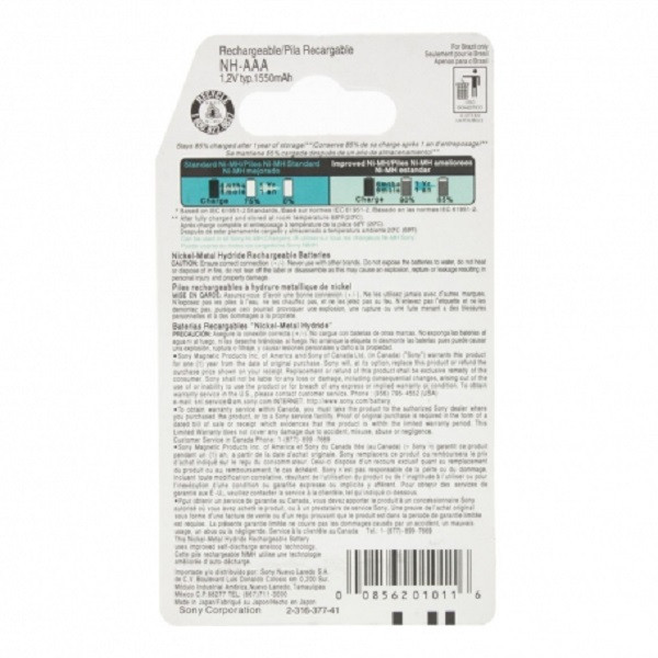 باتری نیم قلمی قابل شارژ سونی مدل 1550mAh بسته دو عددی
