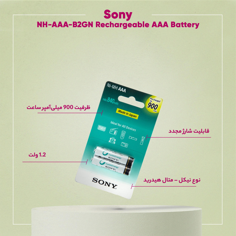 باتری نیم قلمی قابل شارژ سونی مدل NH-AAA-B2GN بسته 2 عددی