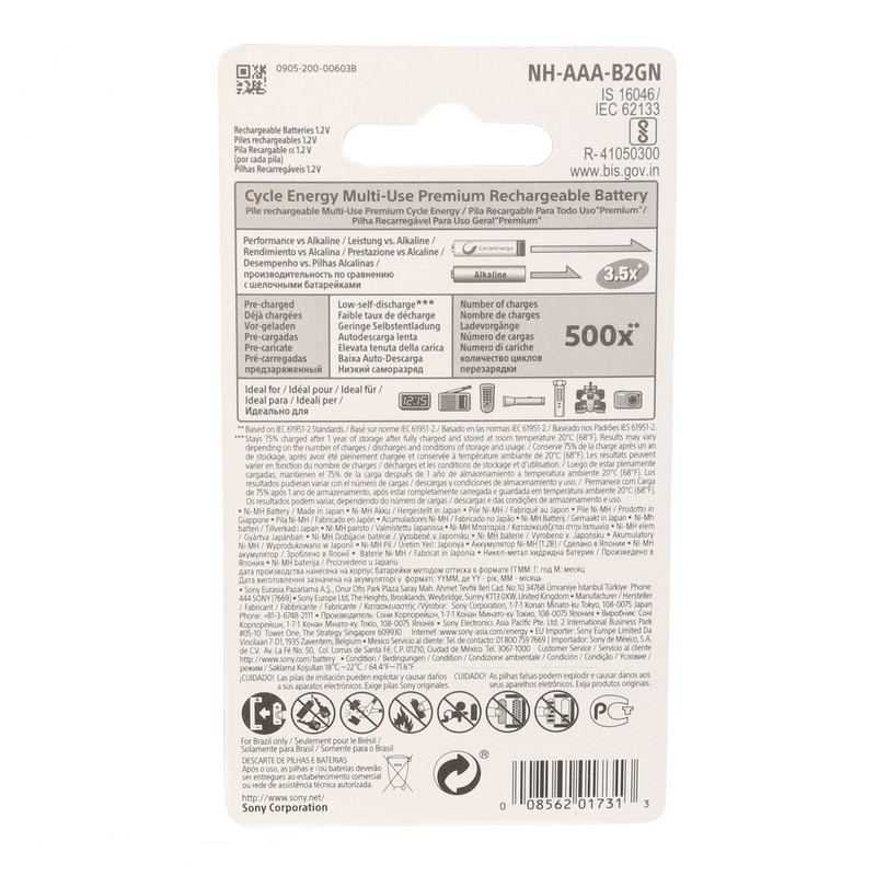 باتری نیم قلمی قابل شارژ سونی مدل NH-AAA-B2GN بسته 2 عددی