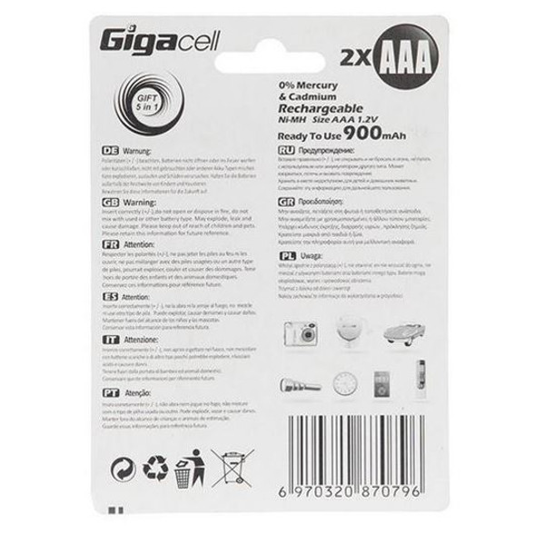 باتری نیم قلمی قابل شارژ گیگاسل مدل 900mAh بسته 2 عددی به همراه چراغ قوه