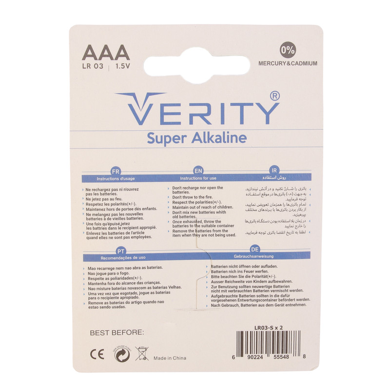 باتری نیم قلمی وریتی مدل Super Alkaline بسته دو عددی