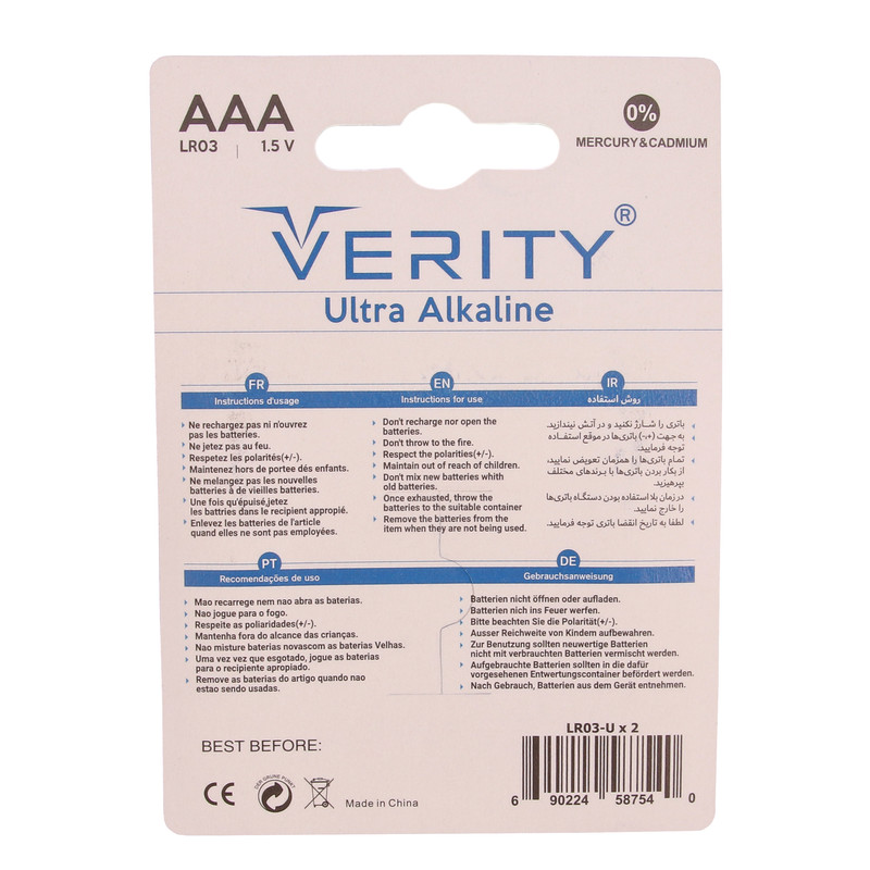 باتری نیم قلمی وریتی مدل Ultra Alkaline بسته چهار عددی