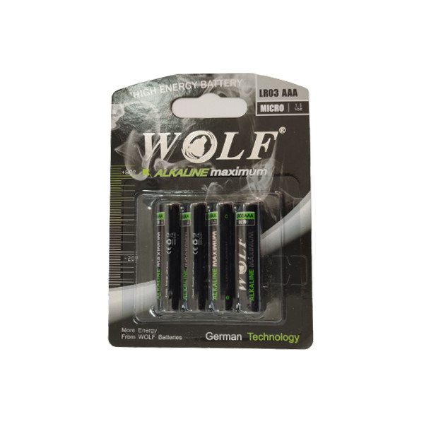 باتری نیم قلمی ولف کد LR03 AAA بسته 4 عددی