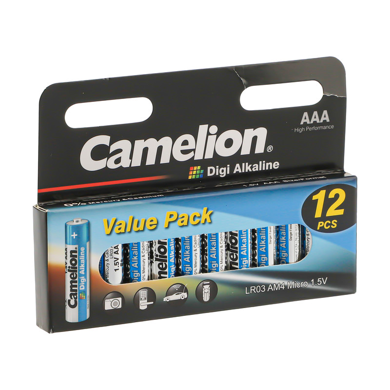 باتری نیم قلمی کملیون مدل digi alkaline بسته 12 عددی