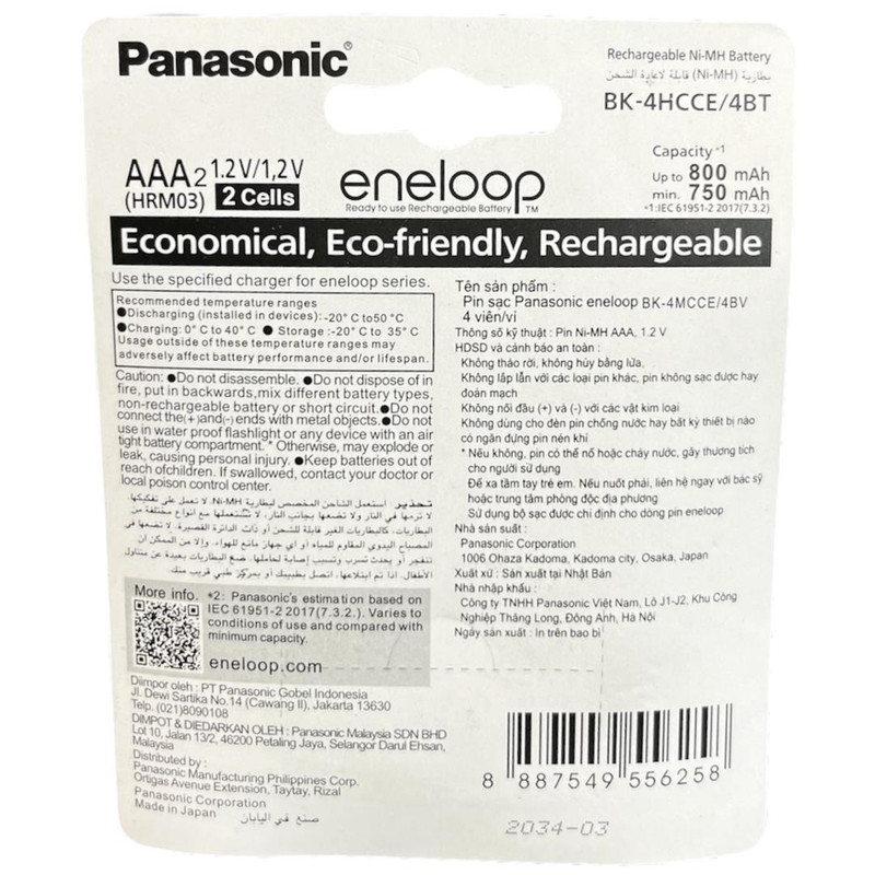 باتری نیم قلم قابل شارژ انلوپ سفید مدل 2000 بسته 2 عددی