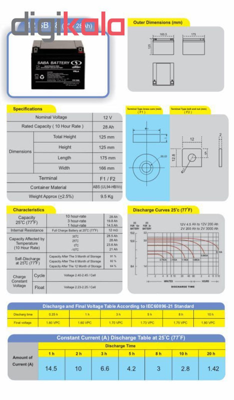 باتری 12 ولت 28 آمپر صبا باتری مدل SB