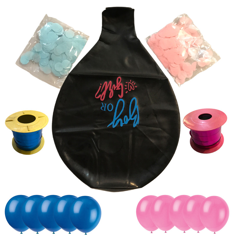 10 عدد بادکنک 6 اینچ ابی و صورتی 2 بسته پولک ابی و صورتی بادکنک 36 اینچ تعیین جنسیت 2 حلقه روبان ابی و صورتی