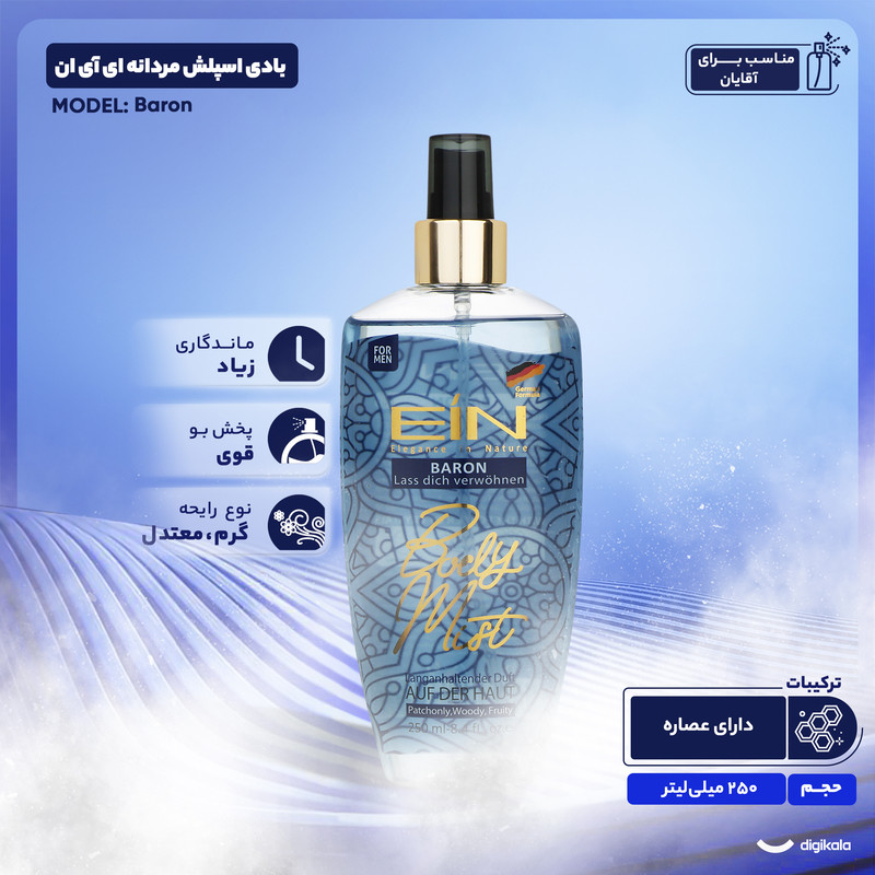 بادی اسپلش مردانه ای آی ان مدل Baron حجم 250 میلی لیتر