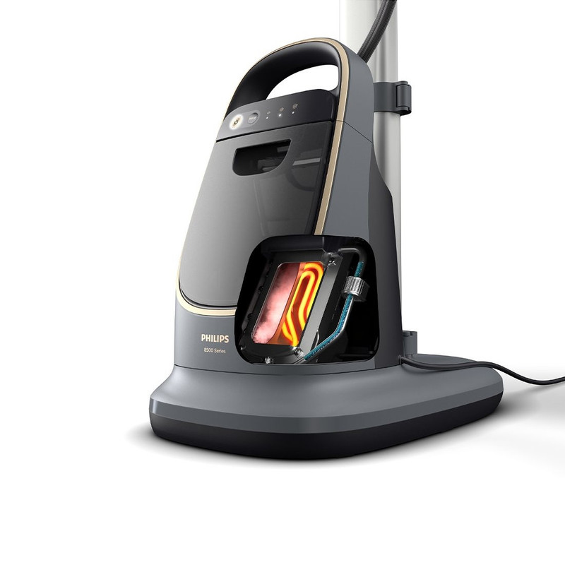 بخارگر فوق پیشرفته فیلیپس، توان مصرفی 2200 وات، خروجی بخار بصورت پیوسته تا 90 گرم در دقیقه، خروجی بخار انفجاری تا 300 گرم در دقیقه، سه درجه بخار قابل تنظیم، فشار بخار تا 6 بار، زمان آماده بکار دستگاه 90 ثانیه، مخزن آب با گنجایش 1.2 لیتر جدا شو، تخته اتو کشی با قابلیت تنظیم زاویه که بعنوان میز اتو قابل استفاده میباشد، یکی از برترین ویژگی های این محصول علاوه بر قدرت بالا و همچنین میزان خروجی بخار بیشتر نسبت به سایر دستگاه ها میتوان به حرارت در قسمت خروجی بخار اشاره کرد که علاوه بر یک بخارگر ایستاده به شما امکان اتو کشیدن البسه و همچنین بهره مندی از خط اتو را به مانند یک اتو مخزن دار حرفه ای برای شما فراهم میکند، در همه دستگاههای بخارگر فقط خروجی بخار وجود دارد و قابلیت بخار دهی ایستاده اما در این دستگاه به لطف وجود المنت در قسمت خروجی بخار شما علاوه بر بخارگر یک اتو بسیار عالی با خروجی بخار فوق العاده خواهید داشت، قابلیت بخاردهی تی شرت، پرده، لباس های کارشده مجلسی، کت و شلوار و ….، این دستگاه بدلیل سهولت استفاده بسیار برای مصارف روزمره مناسب و راحت میباشد، تا 99/99 درصد از بین برنده باکتری ها از سطح البسه، تکنولوژی OptimalTEMP که بدون نگرانی از سوختگی لباس میتوانید انواع لباس از شلوار جین گرفته تا ابریشم را اتو کشی کنید، به لطف طراحی منحصر بفرد موتورهای دوگانه نیازی به رسوب زدایی نیست تضمین عملکرد طولانی مدت بدون رسوب زدایی، طراحی و مهندسی محصول در کشور هلند مونتاژ نهایی در کشور چین