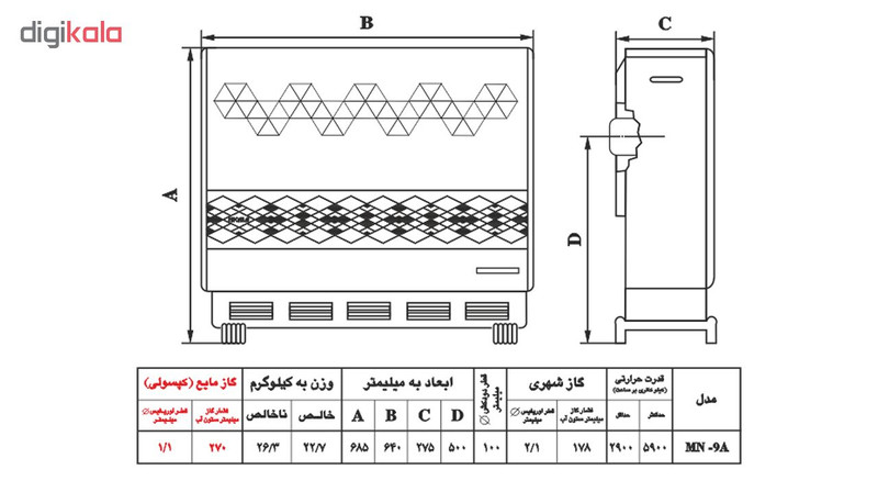 بخاری گازی نیک کالا مدل مریم MN9-A