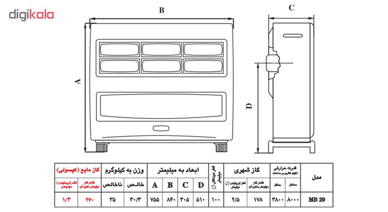 بخاری گازی نیک کالا مدل مهتاب MB-20