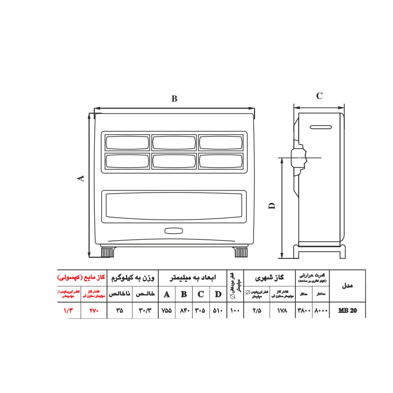 بخاری گازی نیک کالا مدل M_20 مهتاب