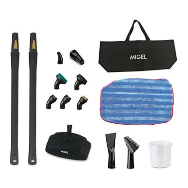 لوازم جانبی: 2 عدد سری لوله گسترش، سری تی کش، 3 عدد پد مایکروفایبر، پیمانه مدرج، برس مثلثی، سری کاردکی، نازل