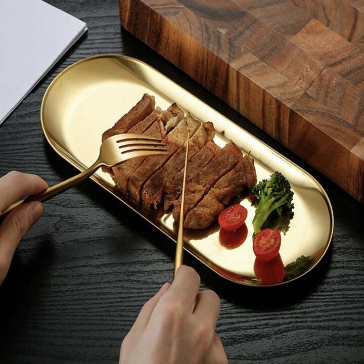 بشقاب مدل رولت خوری استیل بیضی بزرگ