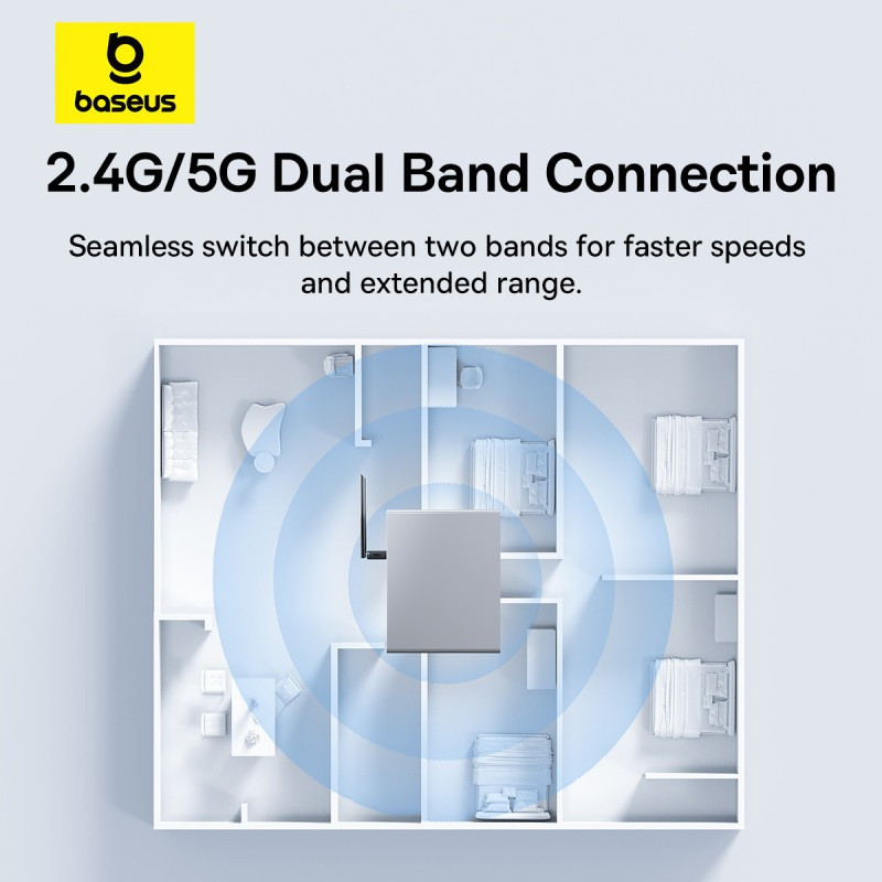 کالای اورجینال وارداتی بیسوس توسط تیم تکنیک تل | توانایی نفوذ بهتر | پوشش گسترده تر | مجهز به درایور داخلی، بدون نیاز به سیم کشی و... | سازگار با سیستمهای ویندوز، لینوکس | دارای دو باند 2.4 گیگاهرتز (سرعت 200 مگابیت بر ثانیه) و 5 گیگاهرتز (سرعت 433 مگابیت بر ثانیه) | وجود آنتن 6 دسیبی داخلی | دارای استانداردهای رمزگذاری پیشرفته مانند WPA-PSK، WPA2-PSK و WEP | پشتیبانی از حالت کارت شبکه و هاتاسپات | Plug and Play | سرعت انتقال سیگنال: 650 مگابیت بر ثانیه | قدرت انتقال 20dBm | چرخش 180 درجه.