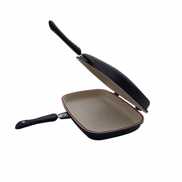 تابه دو طرفه با قابلیت جدا شدن از هم و استفاده جدا گانه -جنس بدنه از چدن - ضخامت بدنه چدن 3 میلی متر- دارای نشان استاندارد ایران و تاییدیه وزارت صنعت و معدن-سایز36