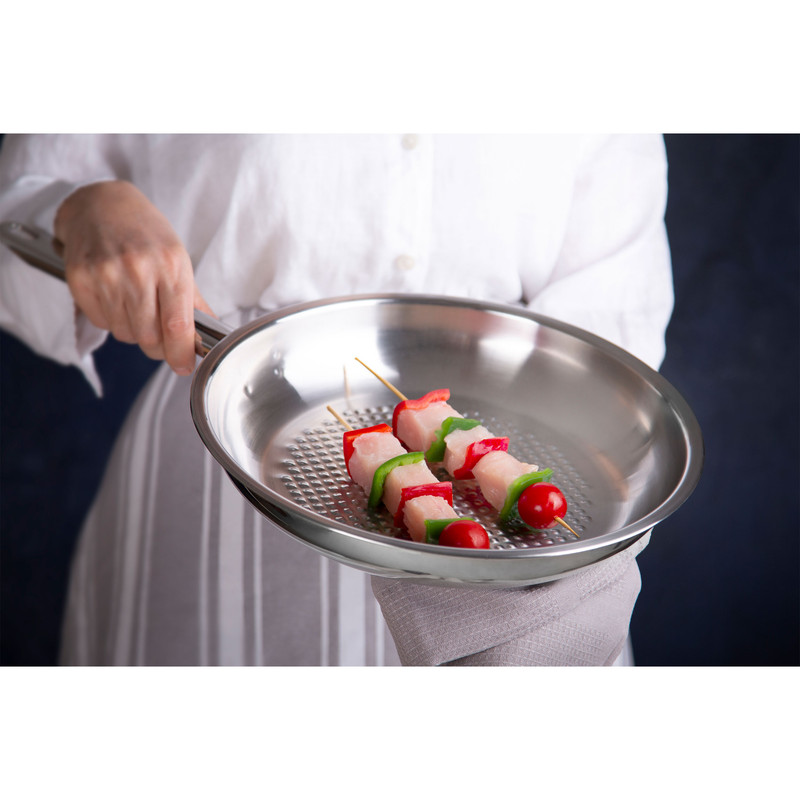 - دارای سطح برآمده ظرف جهت جلوگیری از چسبندگی و سوختن غذا و مصرف کمتر روغن