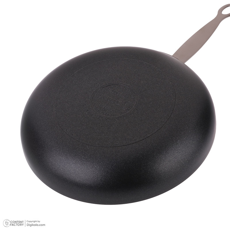 جنس روکش: پوشش گرانیتی PTFE با ظاهر ولکانیک (ساخت آلمان توسط Weilburg) - جنس بدنه: آلومینیوم با روکش نچسب - پوشش نچسب با مقاومت بالا در برابر خراش، تولید با فناوری دوستدار محیط زیست، فاقد مواد مضر مانند سرب و کادمیوم، قابلیت پخت با حرارت کم و مصرف روغن کمتر، مناسب برای انواع اجاقها از جمله القایی (Induction)