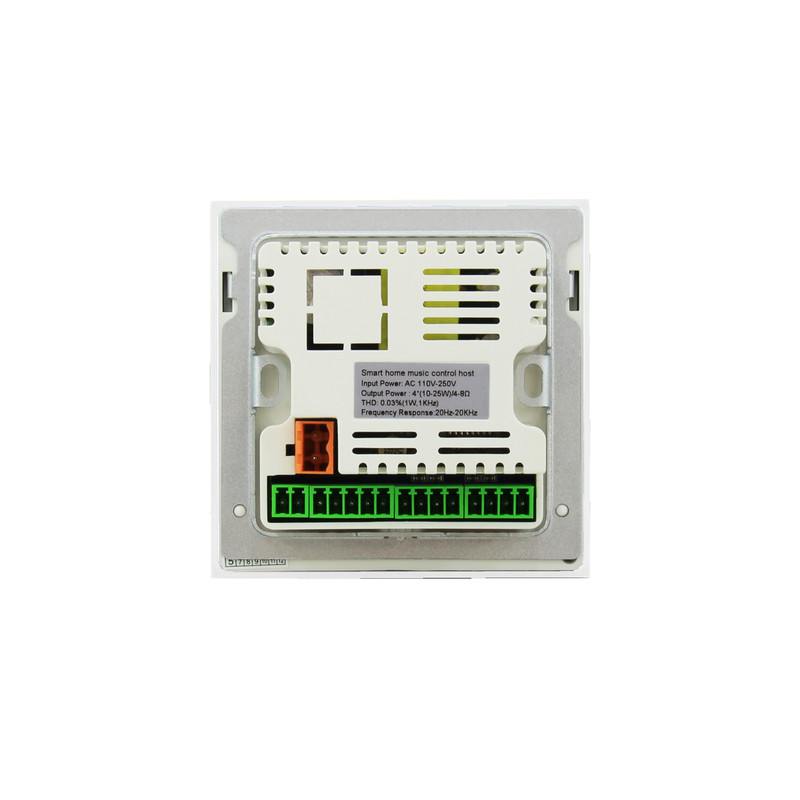 کنترل آسان صدا: امکان تنظیم حجم صدا به صورت دستی از طریق پنل یا از راه دور با ریموت کنترل/روش های پخش متنوع: پشتیبانی از بلوتوث، TF کارت و AUX برای پخش موسیقی از منابع مختلف/اتصال به زنگ درب (Doorbell): قابلیت هماهنگ شدن با زنگ خانه برای اطلاع رسانی صوتی در محیط/خروجی 4 کانال: امکان پخش صدا در چندین محیط به طور همزمان با توان خروجی 4×(25W-10W)/نصب استاندارد: طراحی شده برای نصب در قوطی های استاندارد با آکس 86 میلیمتر/نحوه نصب و استفاده: پنل را در قوطی استاندارد نصب کنید و اتصالات را به برق و بلندگوها متصل کنید و با استفاده از ریموت کنترل یا پنل لمسی، میزان صدا را تنظیم کنید. برای اتصال به بلوتوث، TF کارت یا AUX، ورودی موردنظر را انتخاب کرده و موسیقی را پخش کنید.