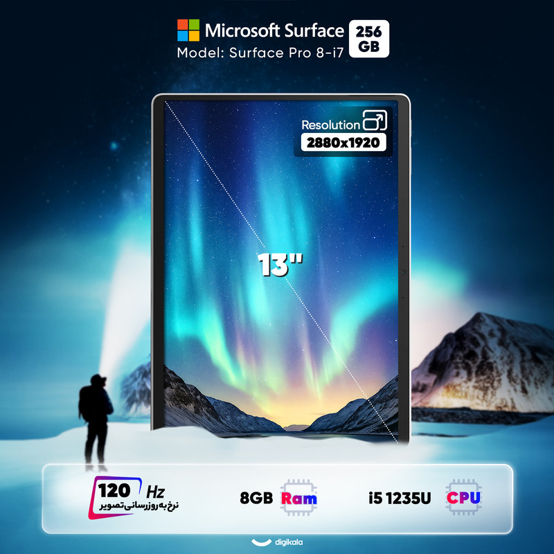 تبلت مایکروسافت مدل Surface Pro 9-i5 1235U ظرفیت 256 گیگابایت و رم 8 گیگابایت