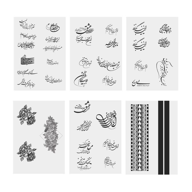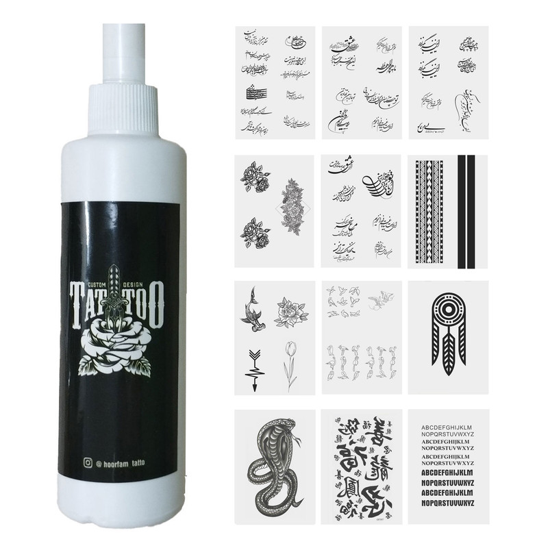 تتو موقت مدل خوشنویسی و فانتزی مجموعه 100 عددی به همراه اسپری تتو موقت