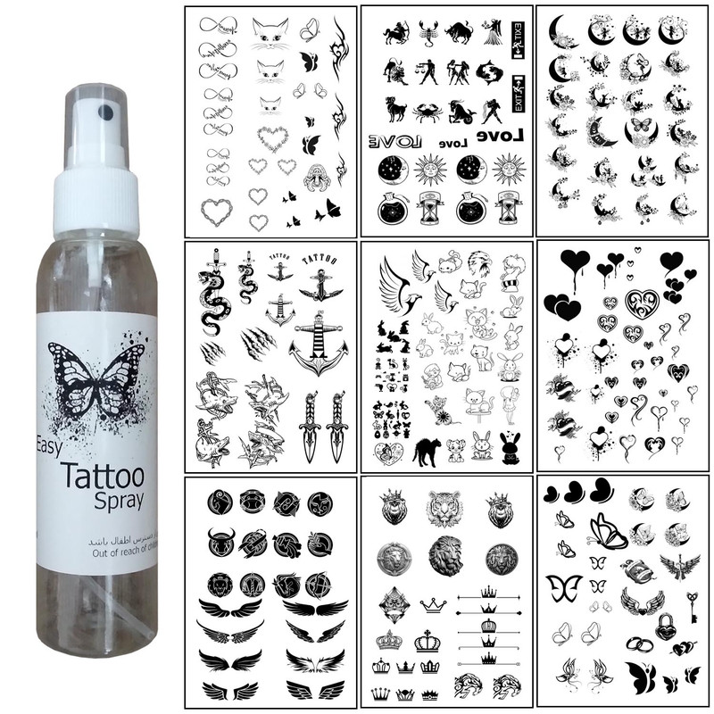تتو موقت مدل 2023 مجموعه 260 عددی به همراه اسپری تتو موقت