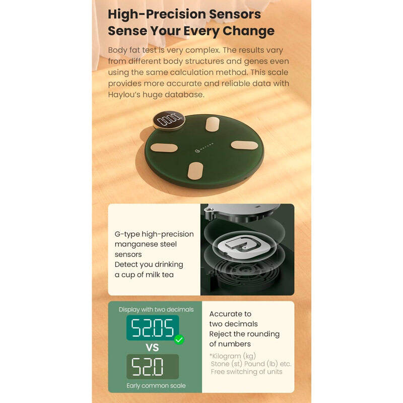 امکان ذخیره سازی اطلاعات وزنی 10 شخص مختلف، دارای اپلیکیشن اختصاصی Haylou Fun App
