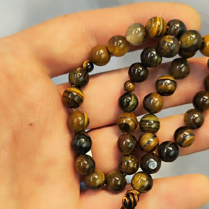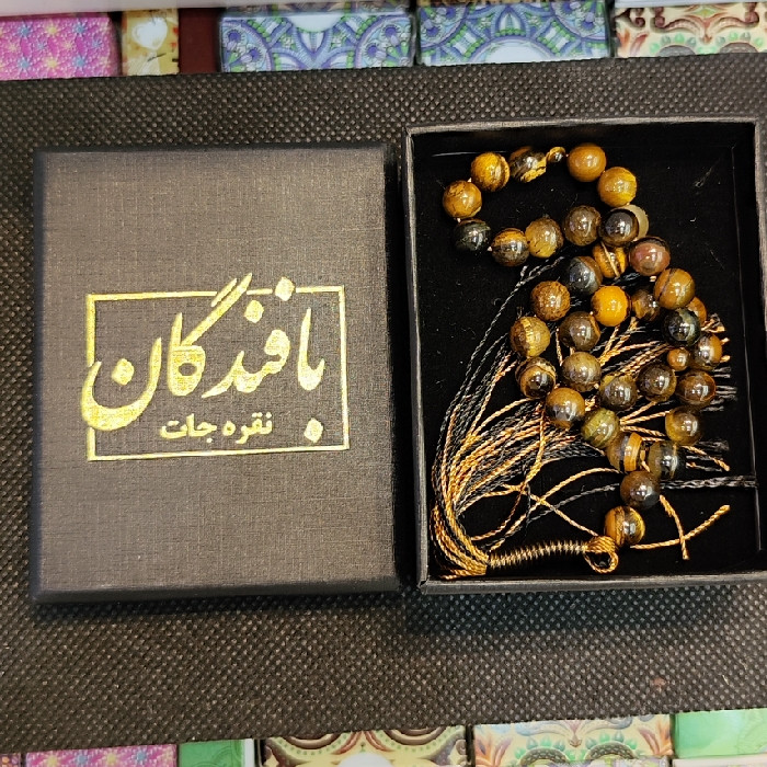 تسبیح نقره جات بافندگان مدل سنگ عقیق تایگر کد 856