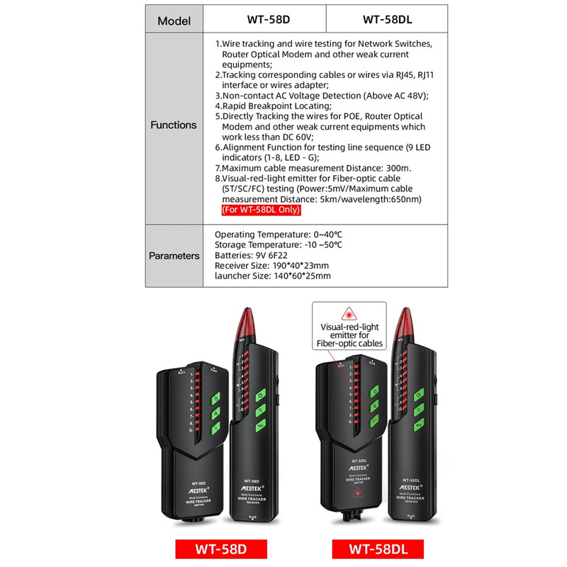 تستر کابل شبکه و ردیاب ولتاژ مستک مدل WT-58DL