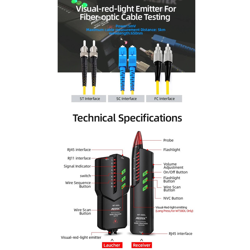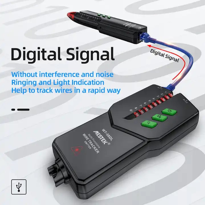 ردیاب سیم چند منظوره مانند تلفن، سیم شبکه، کابل برق و کابل فیبر نوری است. ضد تداخل، بدون نویز، خط یاب شبکه سیگنال دیجیتال.