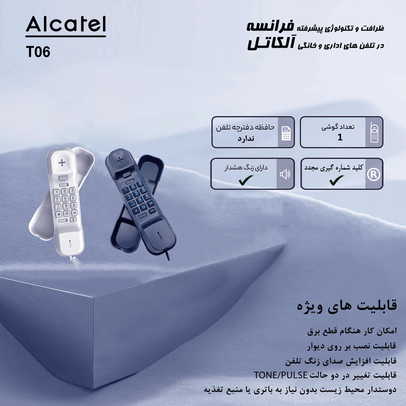 بلندی صدای زنگ قابل تنظیم در دو سطح - قابلیت انتخاب بین حالت Pulse و Tone - بدون نیاز به باتری - شمارهگیری مجدد آخرین شماره