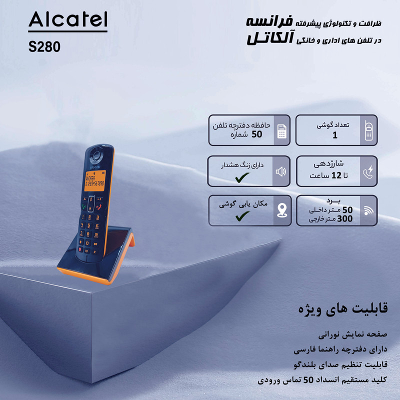 دارای دفترچه راهنما فارسی بلندگو با صدای قابل تنظیم کلید مستقیم انسداد هوشمند 50 تماس ورودی ( CALL BLOCK ) قابلیت ذخیره 50 شماره با نام نمایش شماره تماس گیرنده، بلندگو با کیفیت بالا