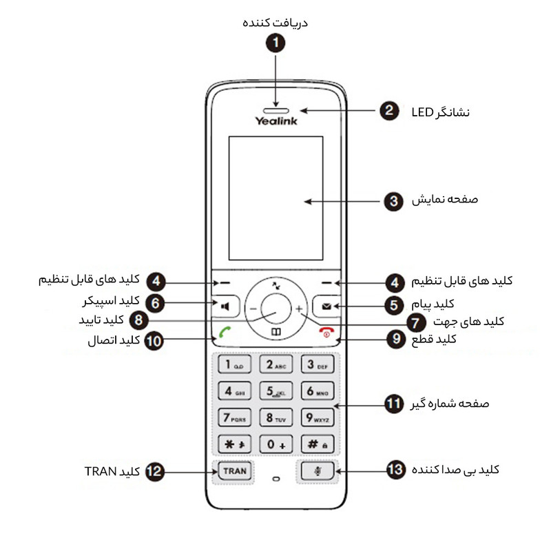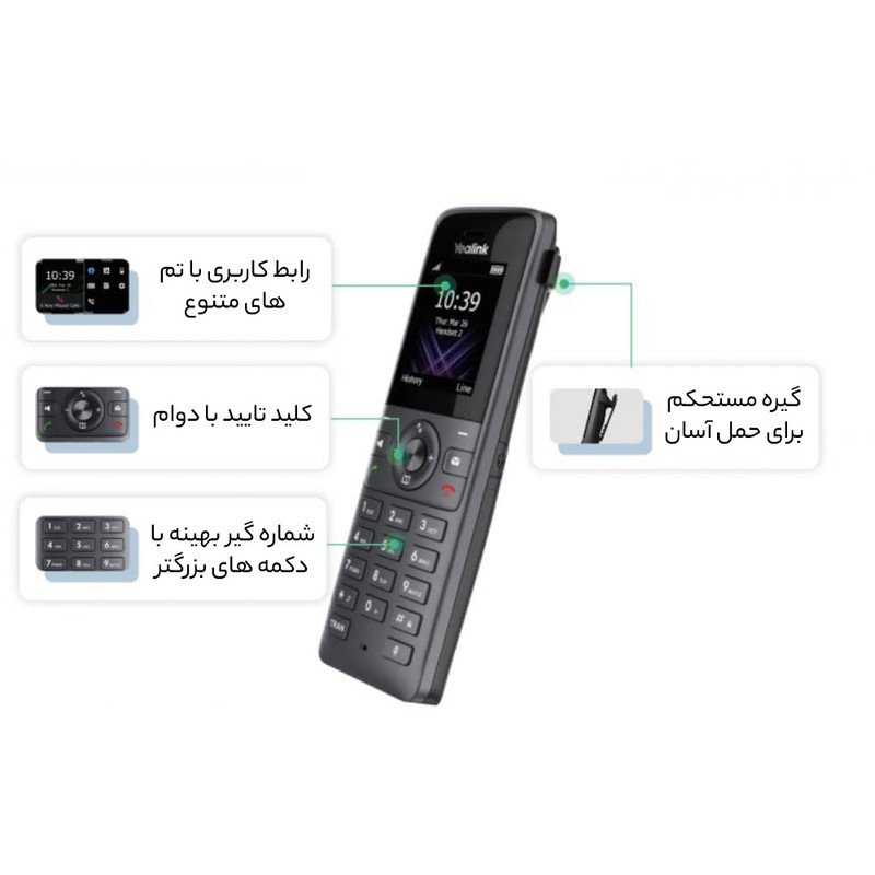 هشت اکانت SIP- قابلیت هشت تماس همزمان -قابلیت جفت شدن با هشت هندست- ال سی دی رنگی 1.8 اینچ TFT 128x160 کنفرانس 3 طرفه شامل یک Base و یک هندست پشتیبانی از کدک Opus