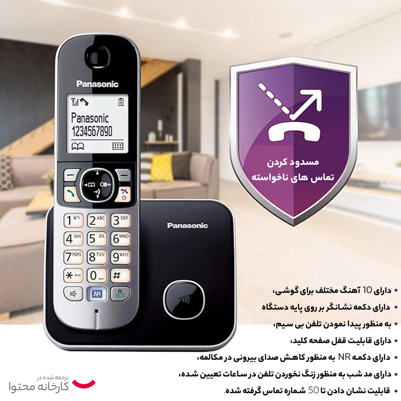 دارای 10 آهنگ مختلف برای گوشی، دارای دکمه نشانگر بر روی پایه دستگاه به منظور پیدا نمودن تلفن بی سیم، دارای قابلیت قفل صفحه کلید، دارای دکمه NR به منظور کاهش صدای بیرونی در مکالمه، دارای مد شب به منظور زنگ نخوردن تلفن در ساعات تعیین شده، قابلیت نشان دادن تا 50 شماره تماس گرفته شده، قابلیت تنظیم Alarm