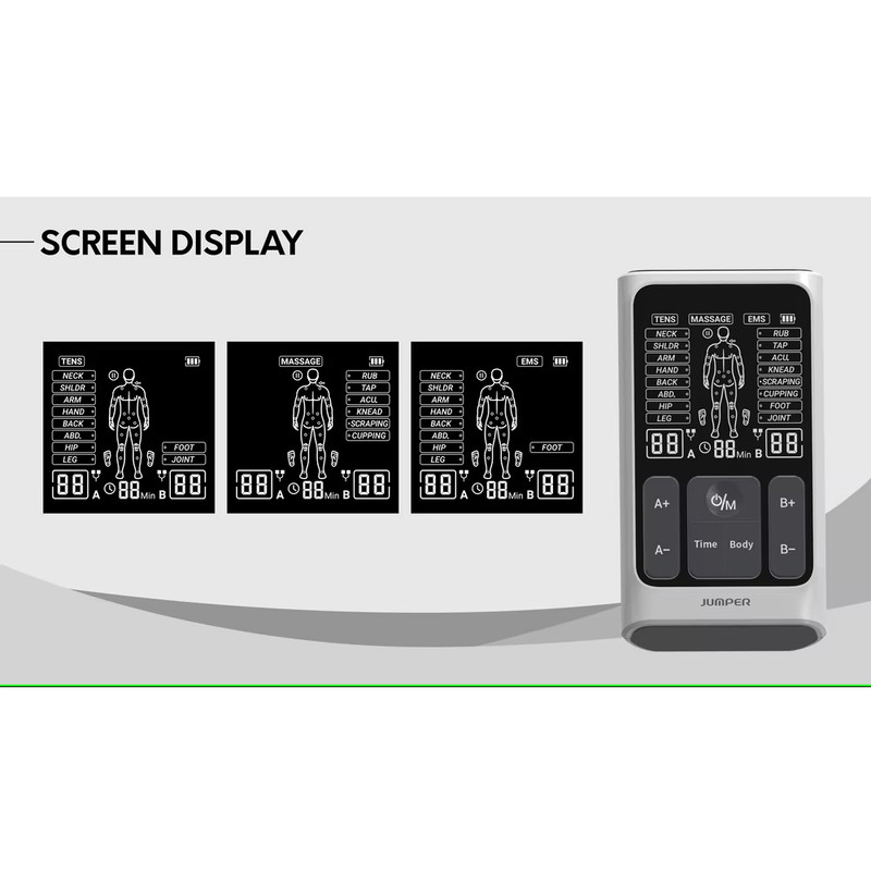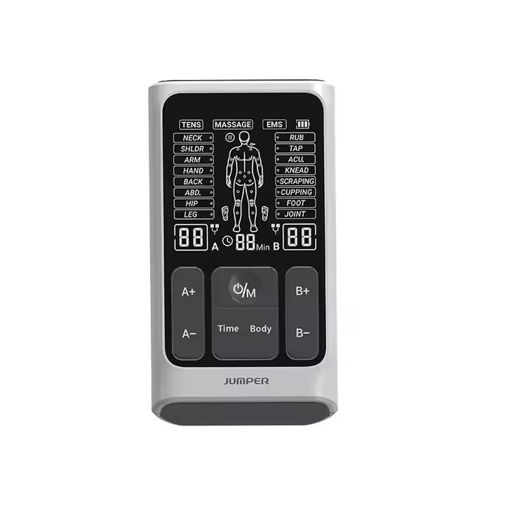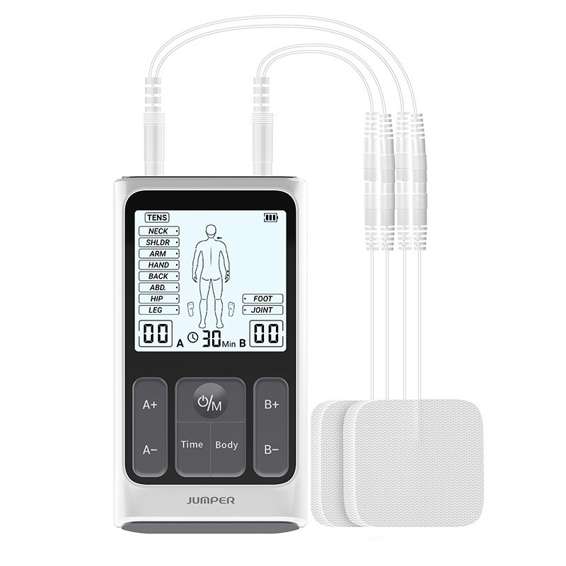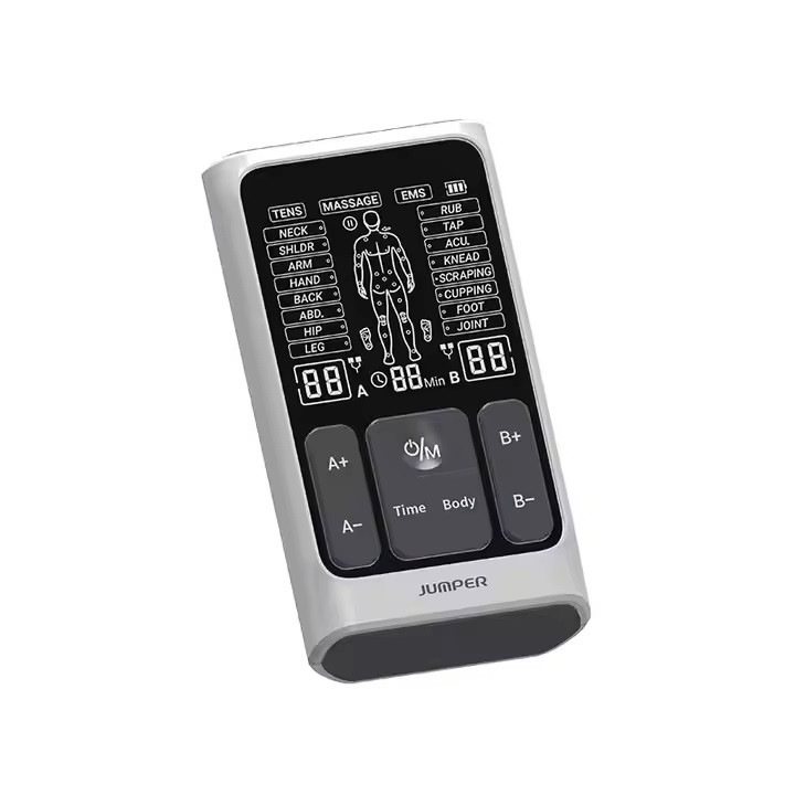 طریقه استفاده از دستگاه : ۱-ابتدا پدها را به سر کابل ها وصل نمایید (4 عدد پد به 4 کابل ) *(البته اجباری در استفاده 4 پد همزمان نیست) ۲-محلی را که میخواهید پدها را روی آن قرار دهید با الکل مرطوب کنید ۳- روکش سفید رنگ روی پدها را جدا نمایید تا سطح مشکی چسبناک نمایان شود وآن را به قسمت مورد نظر بدن بچسبانید وکابل را به دستگاه متصل نمایید. توجه: در صورتیکه پدها متصل به بدن نباشند بار مثبت + و منفی- ایجاد نمیشود و دستگاه کار نمیکند ۴- باطری را در جای خود قرار دهید – سپس دکمه ON\OFF را نگه دارید تا دستگاه روشن شود سپس حالتهای EMS , TENS و MASSAGE را با فشار دادن دکمه M انتخاب کنید. ۵- بعد از انتخاب حالت مورد نظر دکمه Body را فشار دهید و با هر بار فشاردادن، مدل و محل قرارگیری پدها را تعیین کنید و با دکمه Time زمان استفاده را تعیین کنید 6- در مرحله آخر دکمه های A و B (+-) تعیین کننده شدت جریان دهی پدهای چپ و راست هستند .