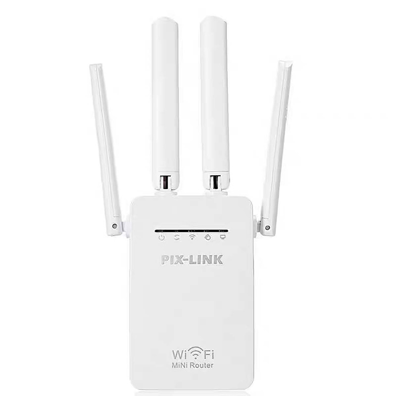تقویت و توسعه وایرلس پیکس لینک یک محصول با کیفیت و پر قدرت برای استفاده کاربران شبکه میباشد. این محصول دارای ۴ آنتن قوی با قدرت di می باشد که به راحتی دسترسی و اتصال کاربران به شبکه بی سیم را فراهم می کند. معمولا از اکسس پوینت ها و توسعه دهنده های شبکه برای تقویت شبکه وای فای در منازل و مناطقی از شبکه داخلی یک مجموعه استفاده می شود که امکان استفاده کاربران در کل محیط را فراهم می آورد. همچنین این محصول دارای یک پورت LAN و یک پورت Ethernet نیز می باشد. از این محصول در واقع با پنج نوع کاربری متفاوت می توان استفاده کرد که عبارت اند از
