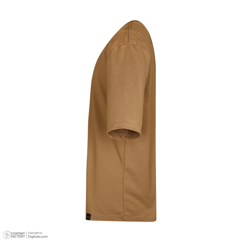 تیشرت آستین کوتاه مردانه / ضخامت کم - خنک / آستین کوتاه / یقه گرد ساده / قواره معمولی / رنگ قهوه ای .
