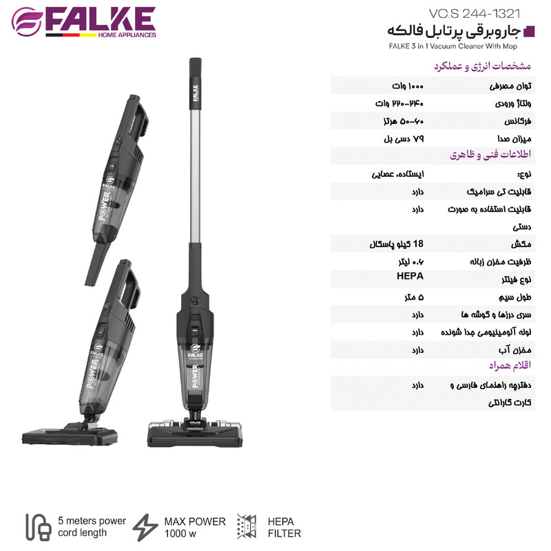 جاروبرقی 1000 وات فالکه مدل VC.S244-1321