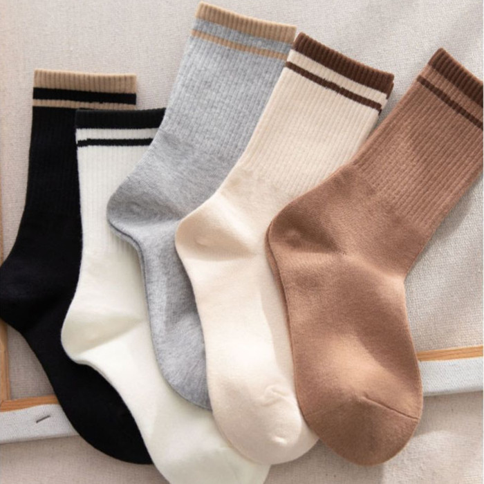 جوراب ساق بلند مدل اسپرت خط دار بسته 5 عددی