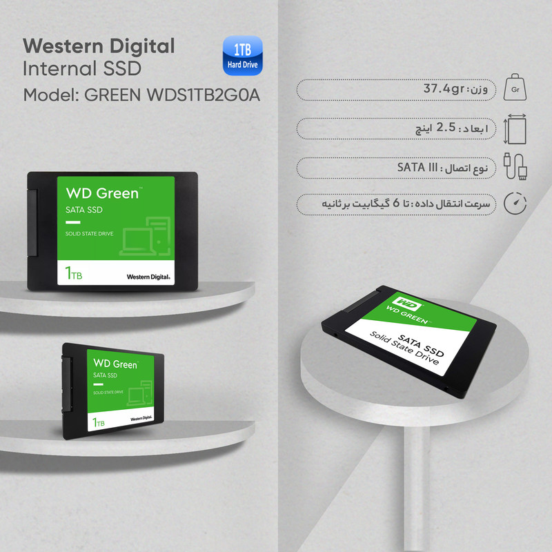 حافظه SSD وسترن دیجیتال مدل GREEN WDS1TB2G0A ظرفیت 1 ترابایت