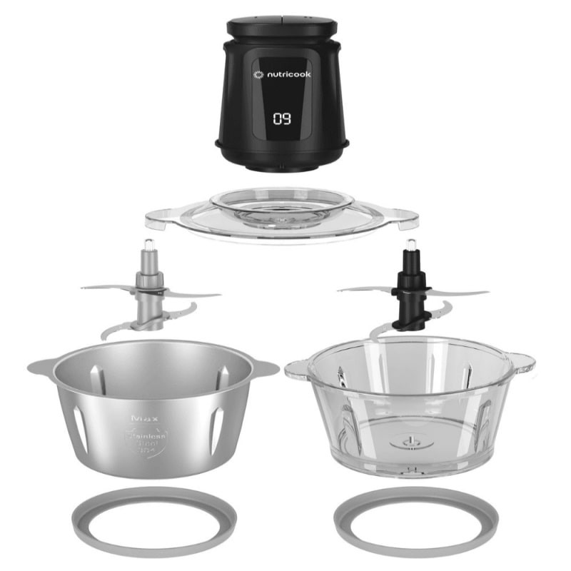 صحفه نمایشگر دیجیتال - توان 500 وات - ظرفیت 2 لیتر - سرعت 2 حالت - تعداد کاسه = 2 کاسه یک استیل و یک پیرکس - تایمر دیجیتال - تیغه 4 پره استیل ضد زنگ