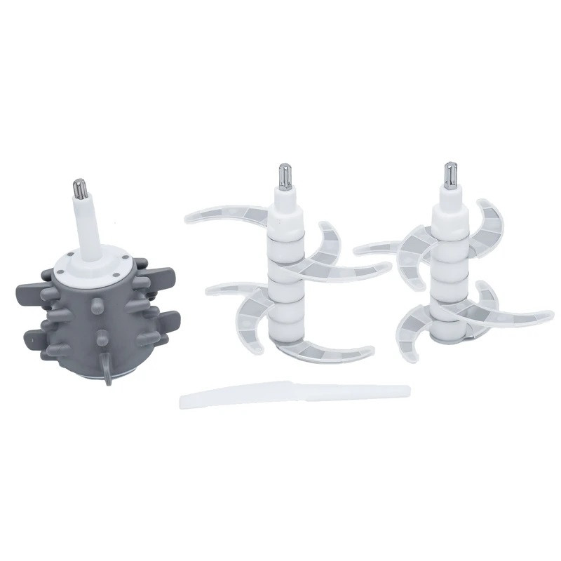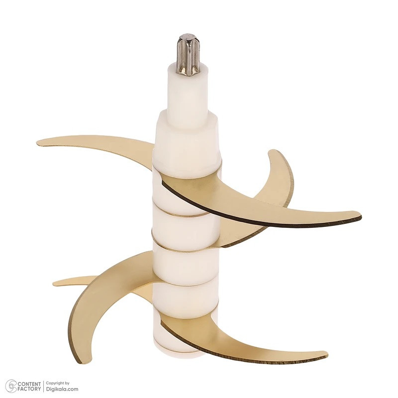 دفترچه راهنما - تیغه سیر پوست کن - یک عدد کاسه پیرکس - یک عدد کاسه استیل - کارد پلاستیکی - لاستیک لرز گیر