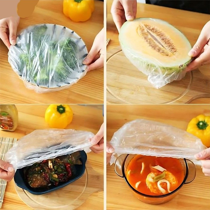 درپوش یکبار مصرف مدل محافظ غذا طرح پلاستیک کش دار مجموعه 200 عددی