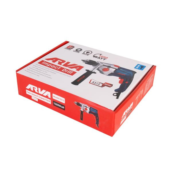 دریل 5315 آروا یک دریل چکشی گیربکسی با نیم تنه فلزی می باشد .این دریل از موتور قدرمتند 1050 واتی بهره می برد . گیربکس این دریل دارای دو سرعت می باشد و ظرفیت سوراخکاری این دریل در اجسام مختلف به شرح زیر می باشد :