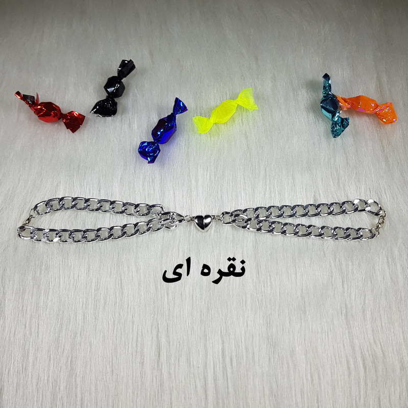 دستبند زنجیر با آویز قلب دو عددی در دو رنگ طلایی و نقره ای با اتصال آهنربایی قلب