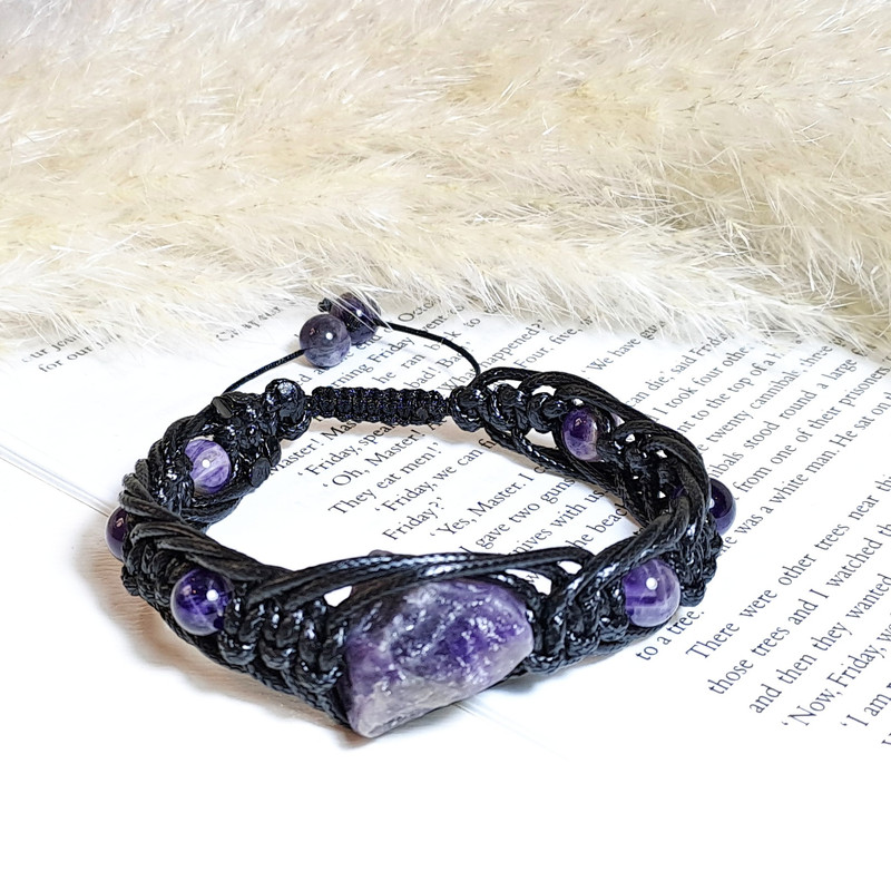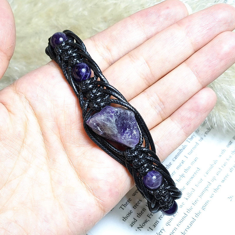 دستبند مردانه مدل دور چرم سنگ آمیتیست